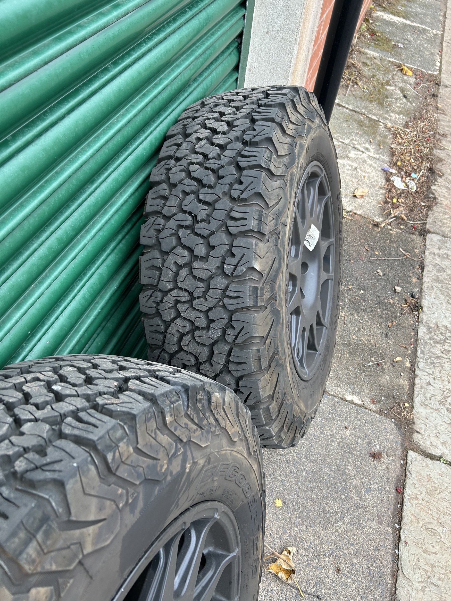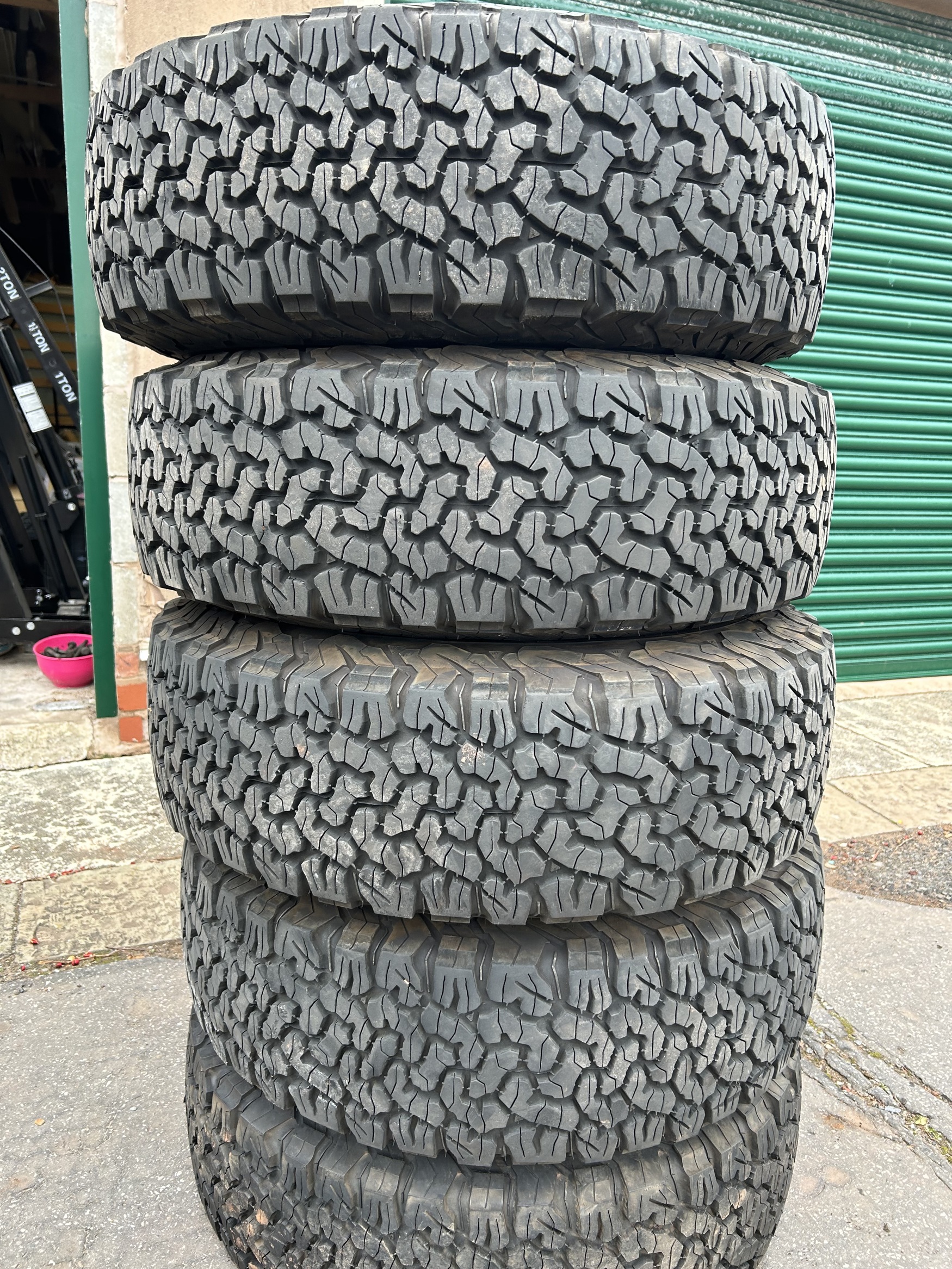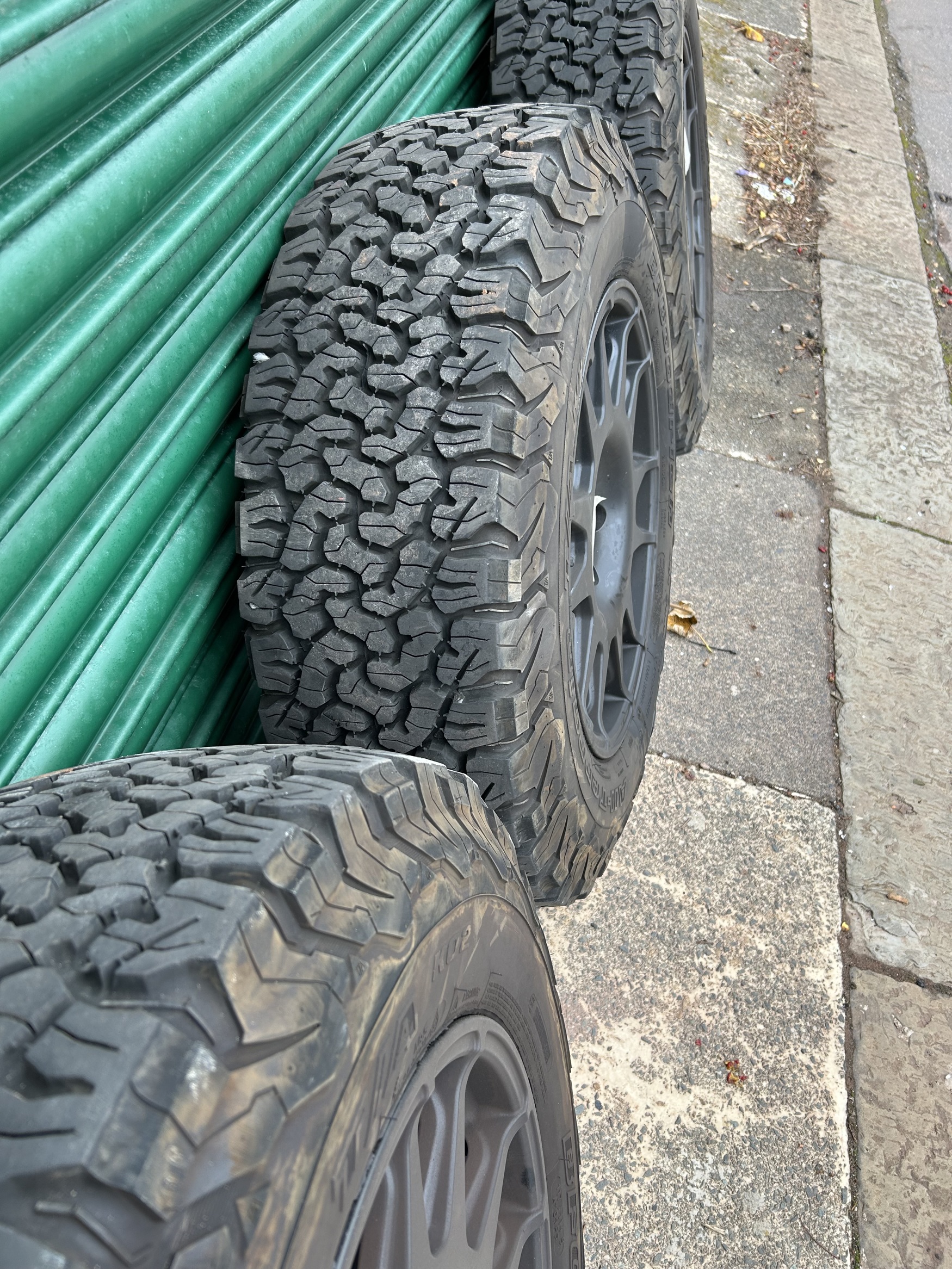 I have for sale 5 bfg ko2 all terrain. This were fitted to a 2023 Grenadier so still well in date. 4 have 11mm tread and the other is unused with 13mm and still has label on. These will be removed from the rims this week and a situated in Blackpool.