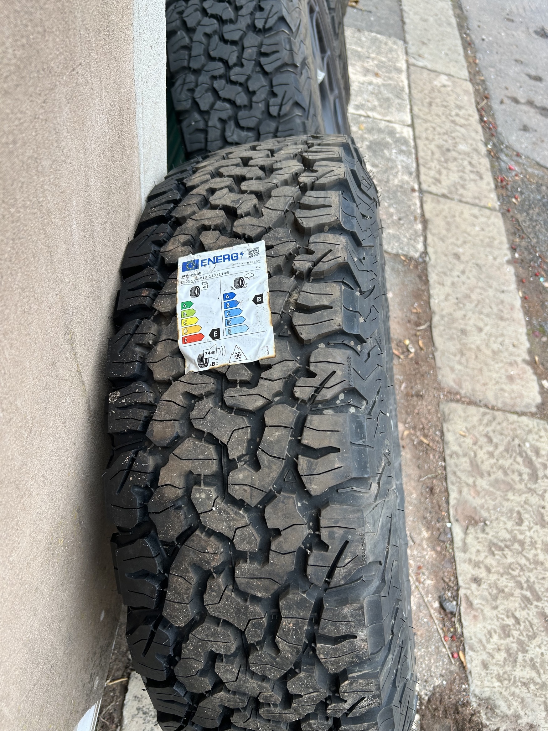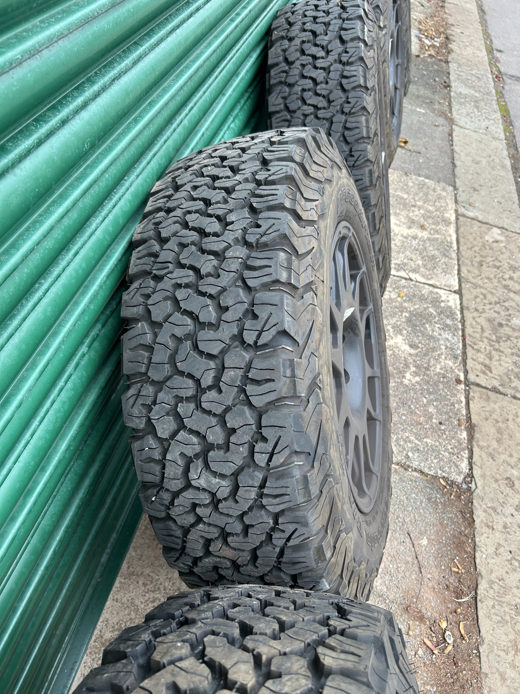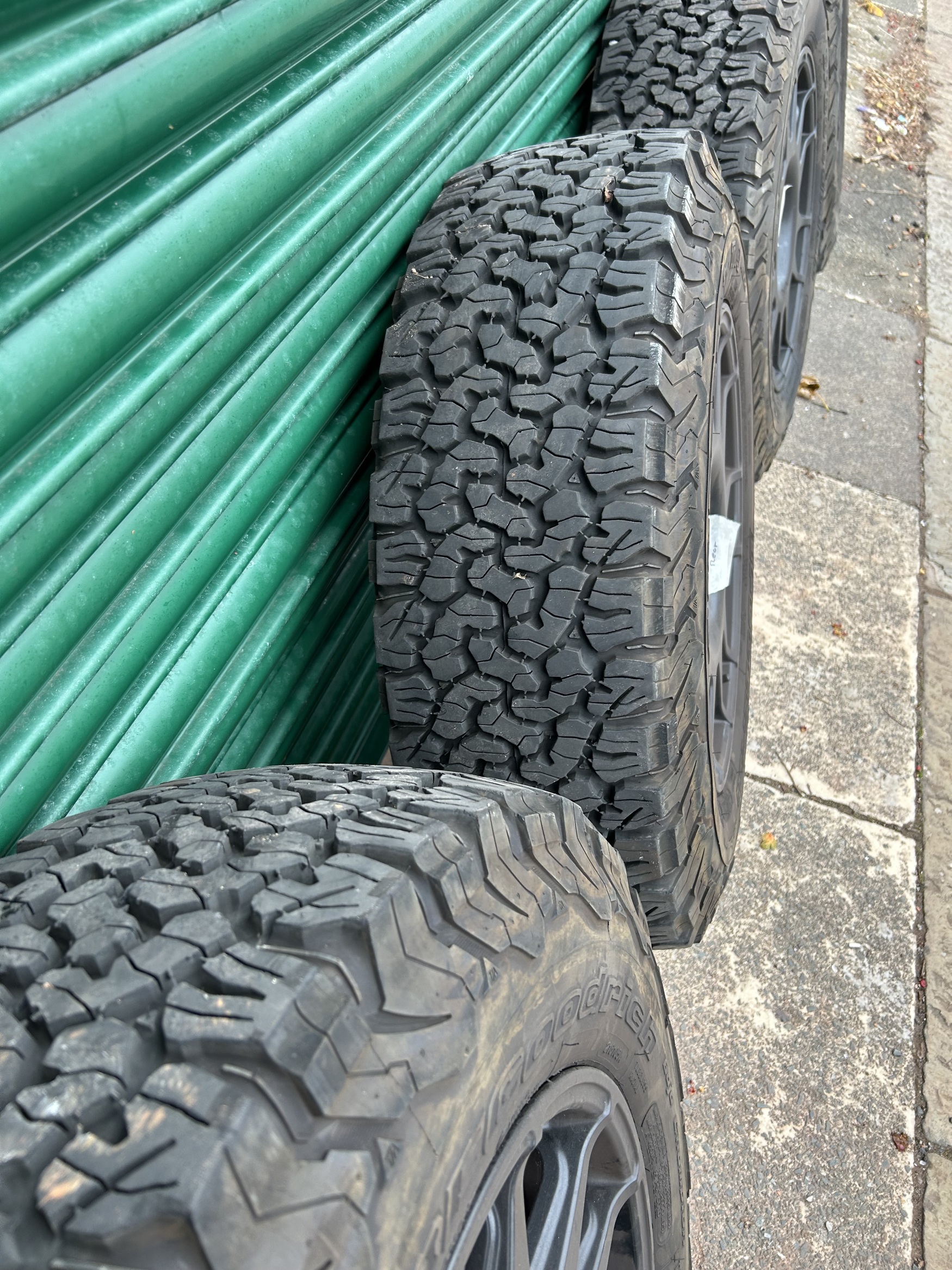 I have for sale 5 bfg ko2 all terrain. This were fitted to a 2023 Grenadier so still well in date. 4 have 11mm tread and the other is unused with 13mm and still has label on. These will be removed from the rims this week and a situated in Blackpool.