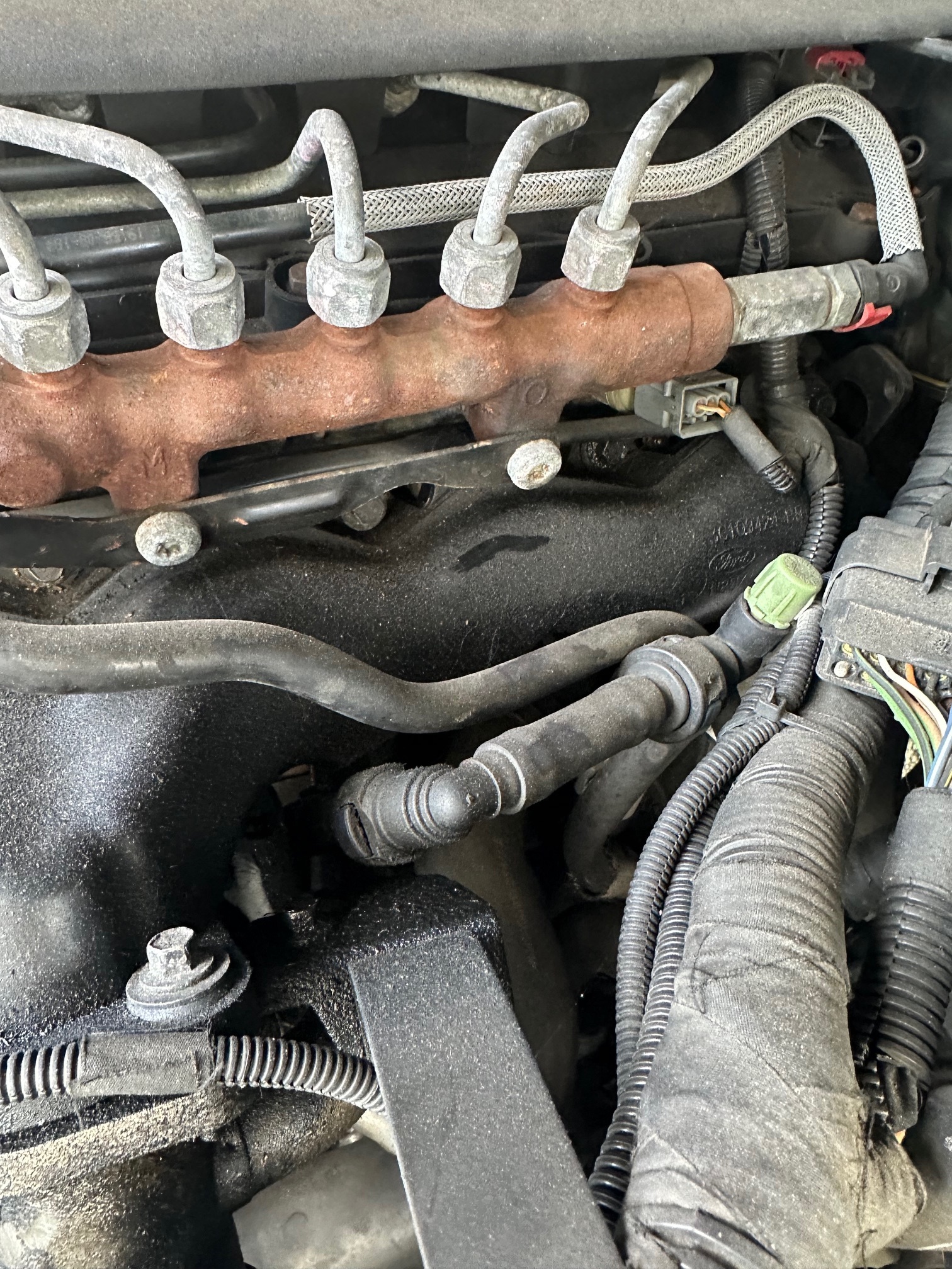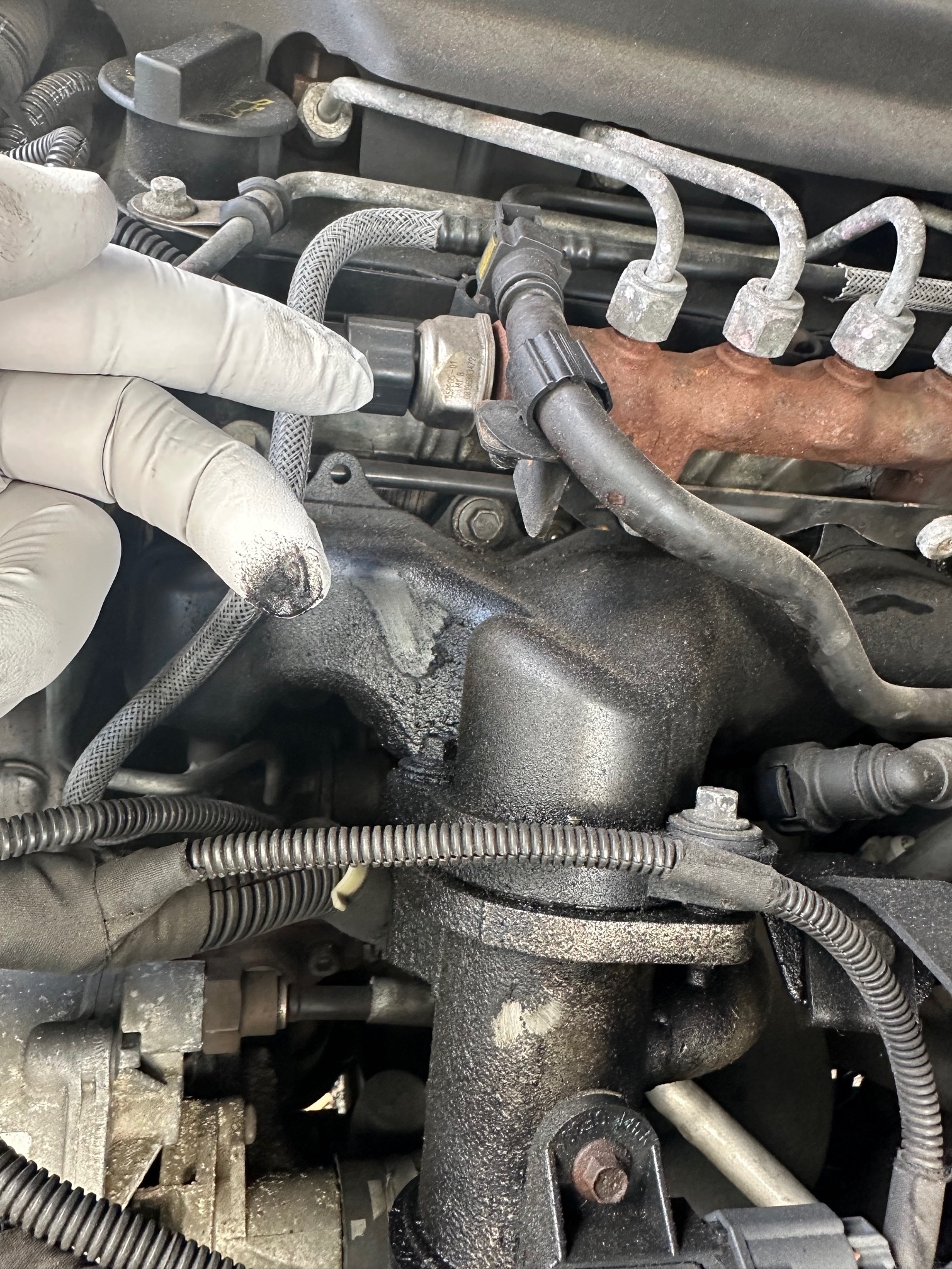 If the PRV was leaking you may still get reasonable running but with incorrect rail pressures. You oily gunk looks to me more like it might indicate a leak in a boost pipe, which is unloading oily induction air over the manifold. It doesn't look to me like a fuel leak from above. Probably 90% of 2.4 Puma fuel-related problems are due to the VCV malfunctioning. Generally any kind of misfire, erratic idle, lack of power. or poor performance particularly when sudden changes in engine demand are made, especially if there are no DTCs, will be down to the VCV. There also seems to be a growing and disturbing trend for new VCVs straight out of the box to be defective. Bearing in mind how (relatively) cheap the VCV is, it is usually a sensible first step to change it, since in most cases - but not all - it will the problem. |