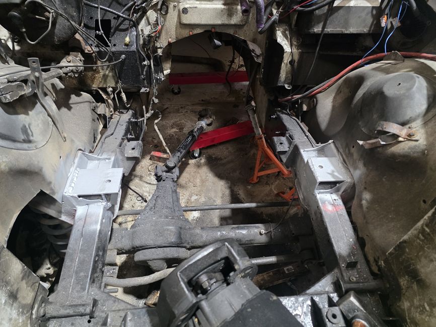 Presume your using an autobox, with the P do you 'need' a handbrake? - Potentially a small caliper on the rear axle for MOT purposes if it was an issue? I was recently daydreaming about Audi RS6 V10 in a defender, with the main access in the original car being that the engine needs to be removed to do anything. In the Defender, and as with this V10TDI, with the wings removed I would envisage superb access all around the engine ![]() |
