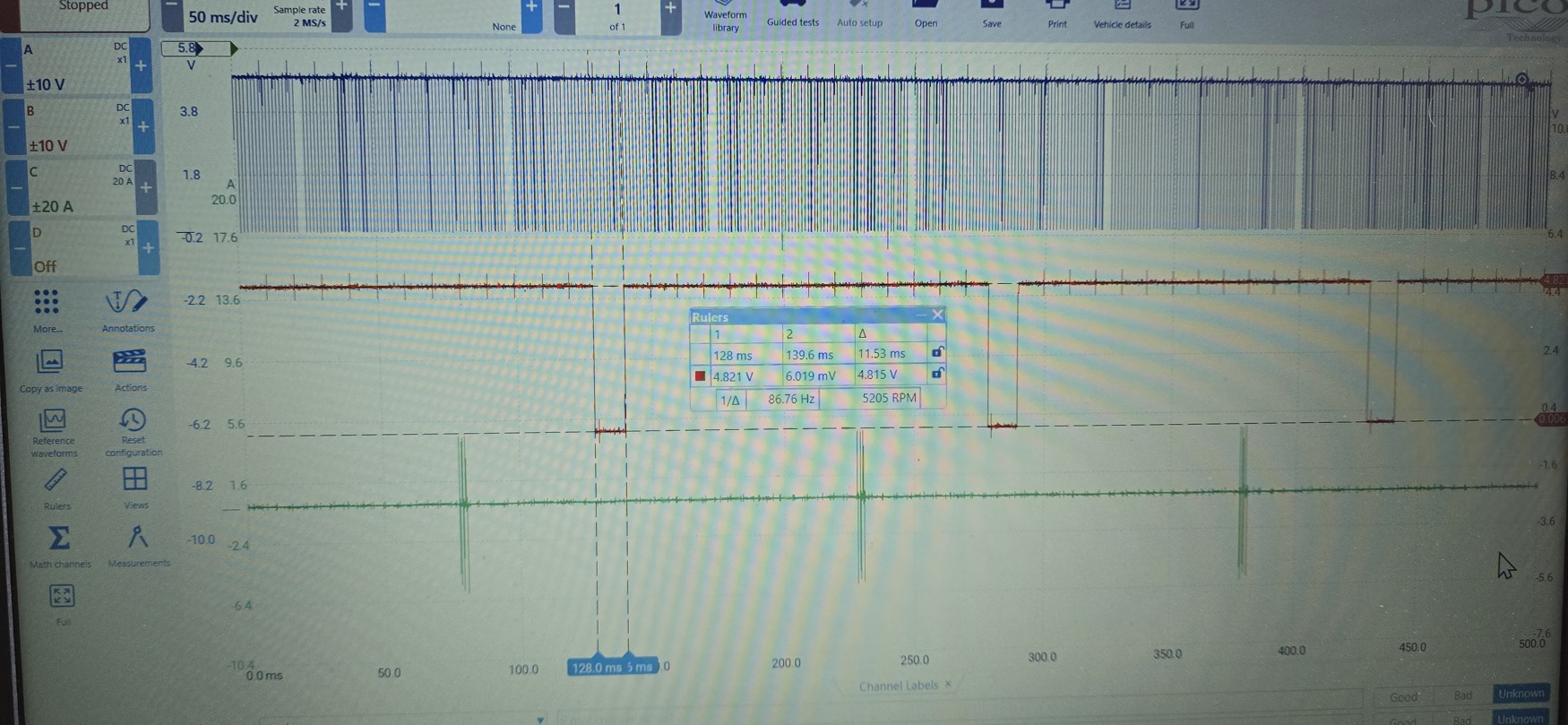 Checking power and ground to the sensor..if its like mine on a 2.2 it receives a 5v supply.. If they are good if you could check the signal..preferably with a scope.. That should give you an idea of what is going on with the camshaft sensor.. I have a trace of mine at tickover.. But you could watch yours at cranking and see what's going on.. One the engine starts the camshaft signal is redundant I believe.. That's what you should see ..( they red trace ) The blue is crank sensor and green is no1 injector..just as a reference.. Click image to enlarge |