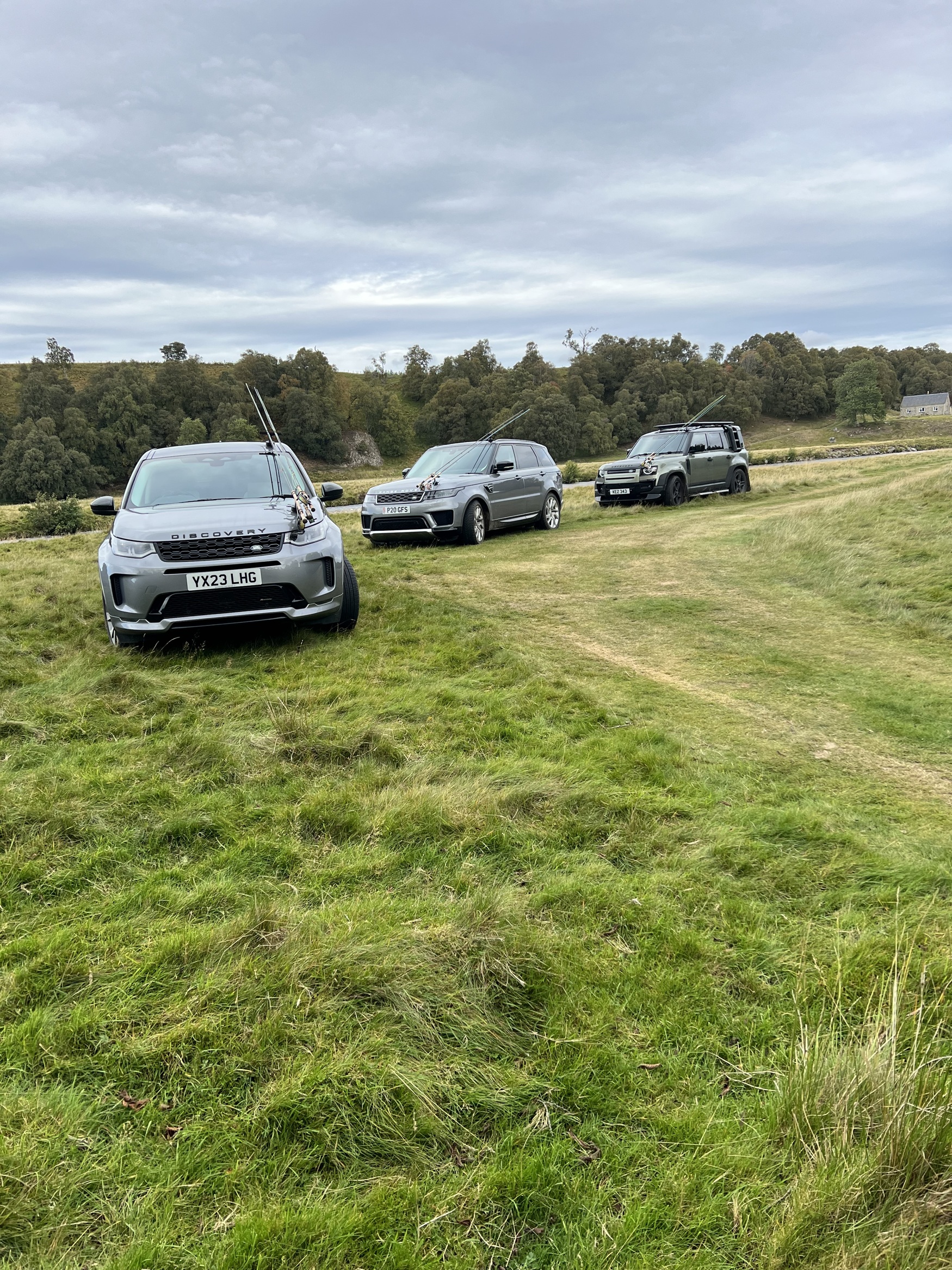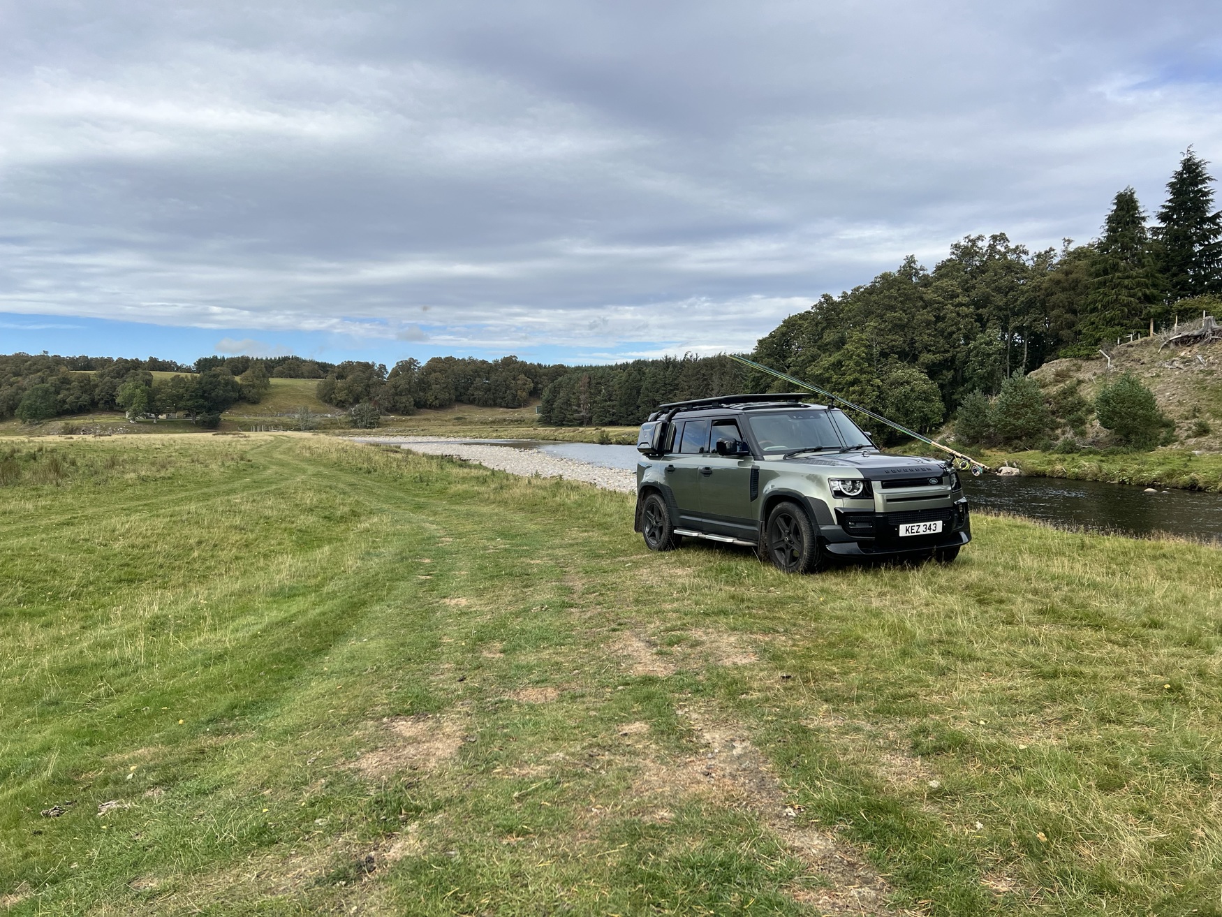 Defender 110 on the banks of a Scottish river - and in good company!