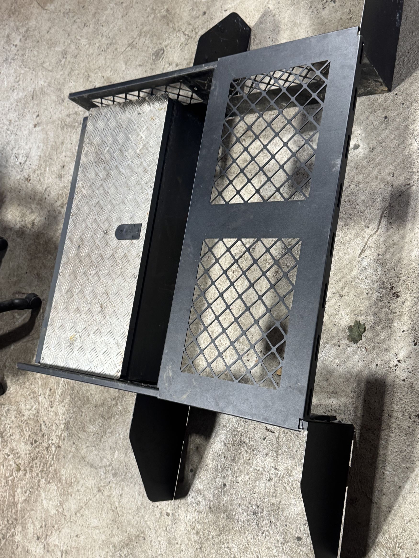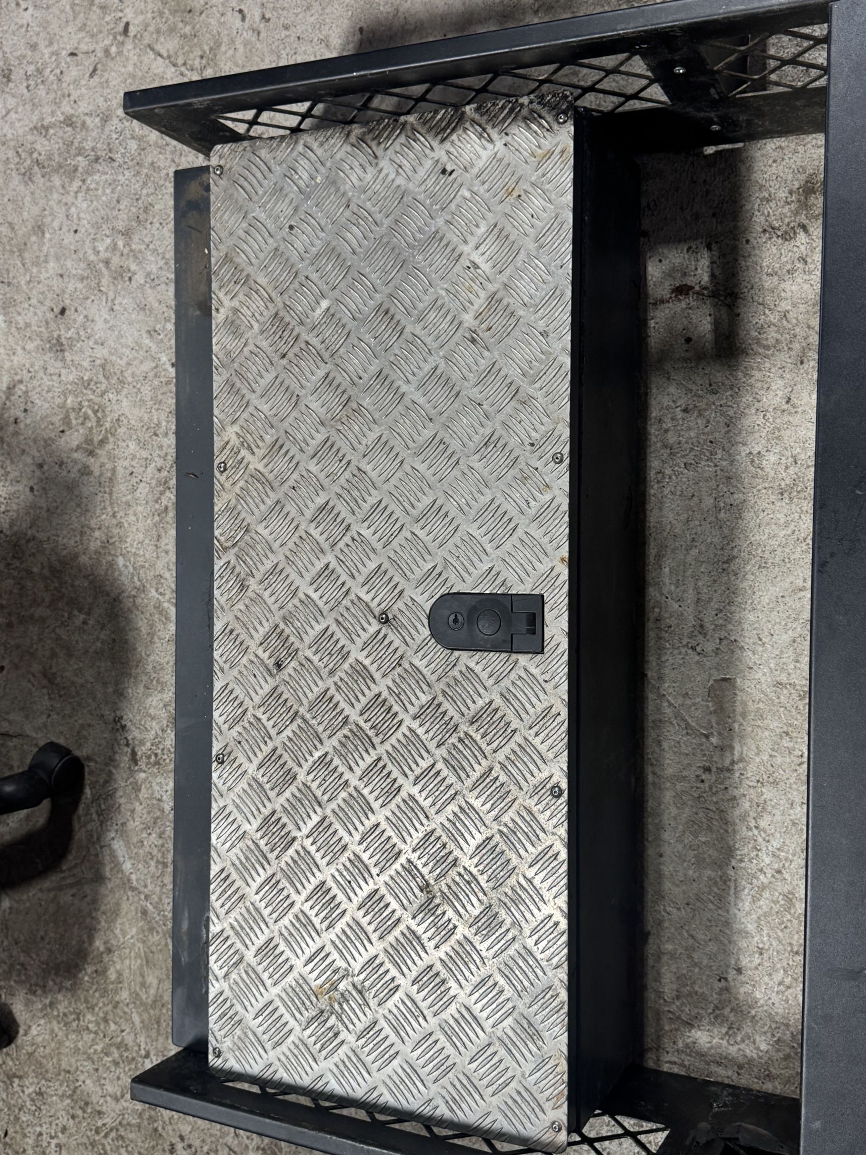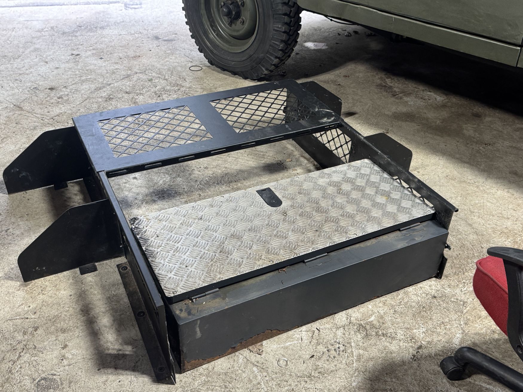 Defender 110 Rear expedition storage pack with side storage bins and locker box which needs a key