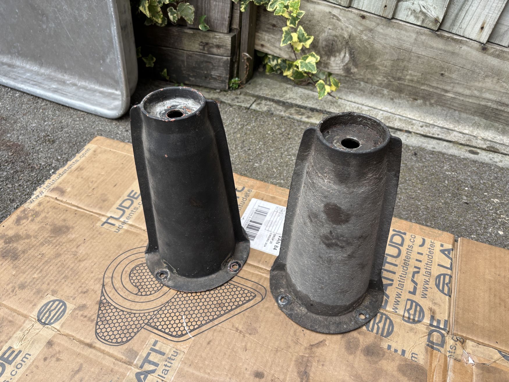 Pair of galvanised, used Defender front shock turrets. One has been painted in Buzzweld RE and CIO and both have some Waxoil overspray but are solid with no rust - £20