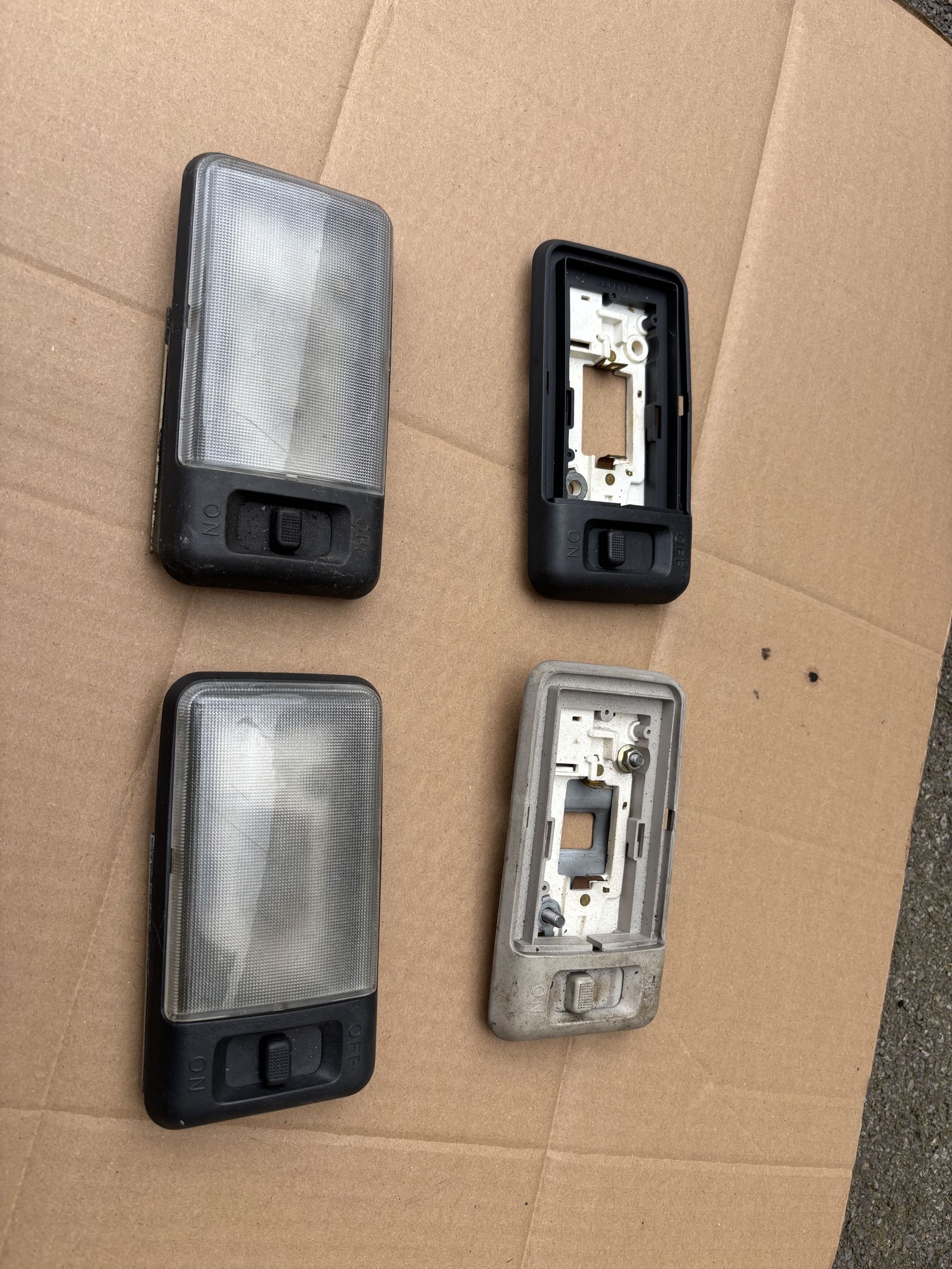 Interior lights - as shown, 2 complete light units in dark grey, one case in dark grey and one case and backing plate in beige (think this is a Discovery item?) both the latter ones don't have lenses. The 2 complete units are 100% serviceable (they even have bulbs!) and the other parts should be considered free for spares but they were all in working order - £20 for the lot.