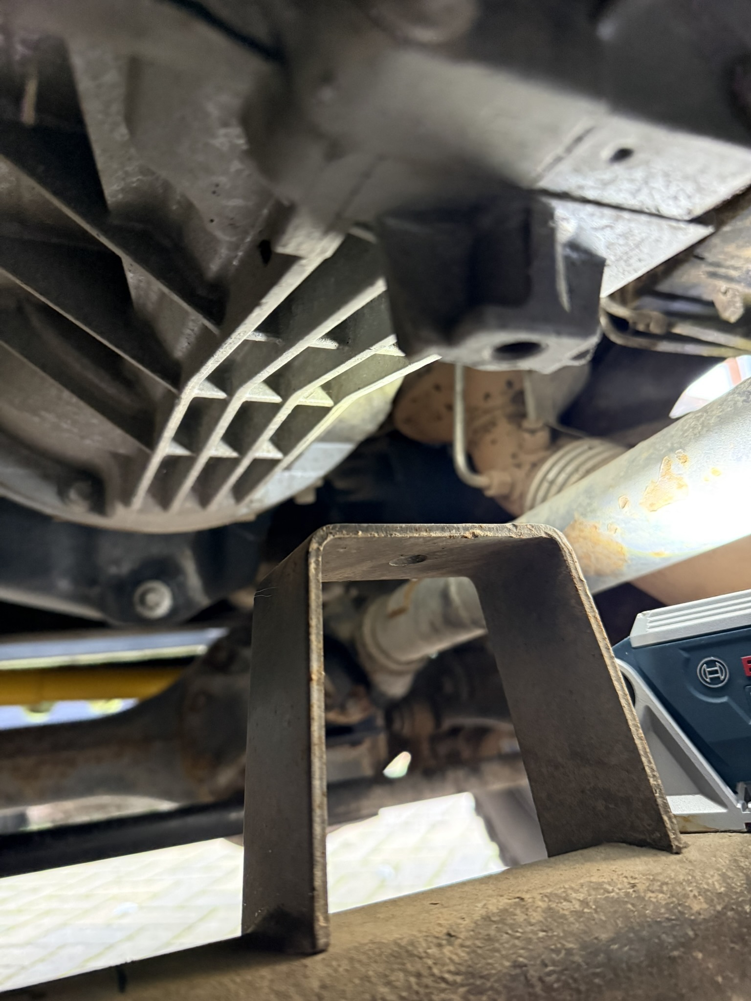 | blackwolf Member Since: 03 Nov 2009 Location: South West England Posts: 18058      | The unused bracket is there because the work experience 'yoof' who was given the task of designing the Ford engine/gearbox installation on the Defender saw that all Fords have a gearbox mount there and thought he'd better include it because nobody had told him that Defenders have a transfer box and therefore much more substantial transmission mountings. Because of this all Defender from 2007 to 2016 have an entirely pointless bracket welded onto the cross member.